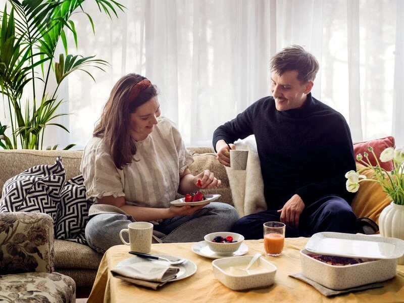 Die Geschirrkollektion Mainio Sarastus wurde entwickelt, um Schönheit und Zweckmäßigkeit vor allem in kleine Küchen und städtische Wohnungen zu bringen. Die wichtigsten Elemente des Produktdesigns waren Vielseitigkeit, Langlebigkeit und Stapelbarkeit: Das Keramikgeschirr ist nicht nur als Essgeschirr, sondern auch zum Zubereiten und Aufbewahren von Speisen gedacht. Die Teller dienen auch als Deckel für die Schalen oder Auflaufformen.