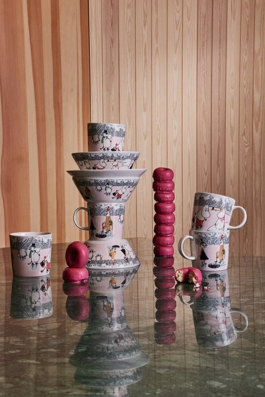 Die saisonale Winter-Wonders-Schale von Arabia wurde speziell für den Winter 2022 designt. Das Design ziert eine pastellfarbene Illustration der Mumin-Familie, die versucht, Schlittschuh zu laufen. Die Illustration basiert auf dem Mumin-Comic „Mumins Winterfreuden“ aus dem Jahr 1955, in dem der sportbegeisterte Herr Frisch im Mumintal ankommt und versucht, den Mumins verschiedene Wintersportarten beizubringen – mit sehr geringem Erfolg.