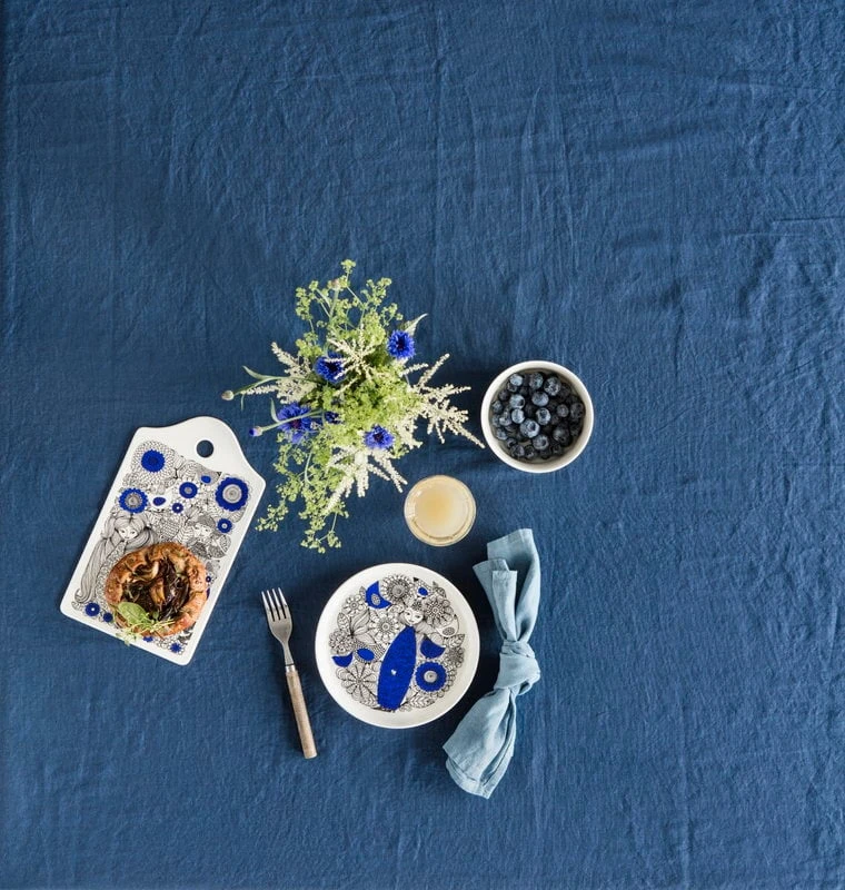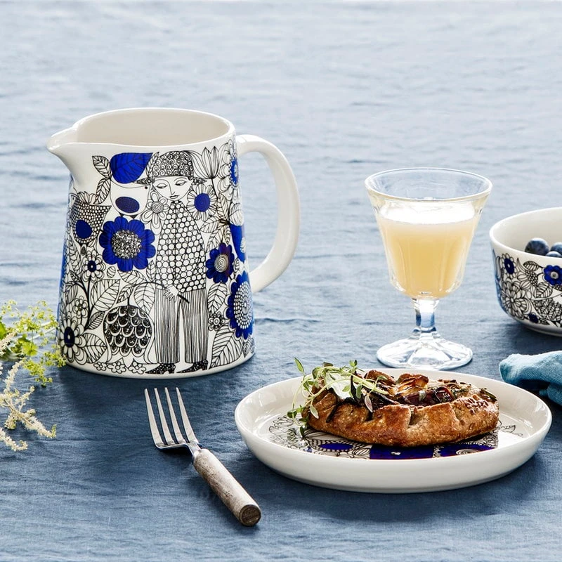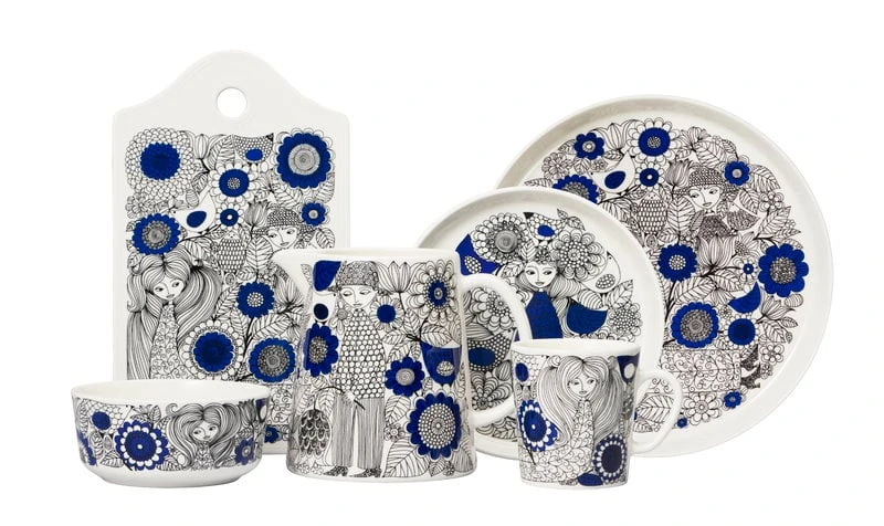 Die Schale Pastoraali von Arabia ist mit einem im Jahr 1965 von Esteri Tomula entworfenen organischen Muster verziert. Pastoraali, das menschliche Figuren inmitten von Blumen, Blättern und Vögeln zeigt, wurde ein tiefer Blauton verliehen, da die neue Siebdrucktechnik die Verwendung von leuchtenden Farben erlaubte. Die reichhaltigen pastoralen Landschaften wurden auf weißes, klarliniges Keramikgeschirr gedruckt.