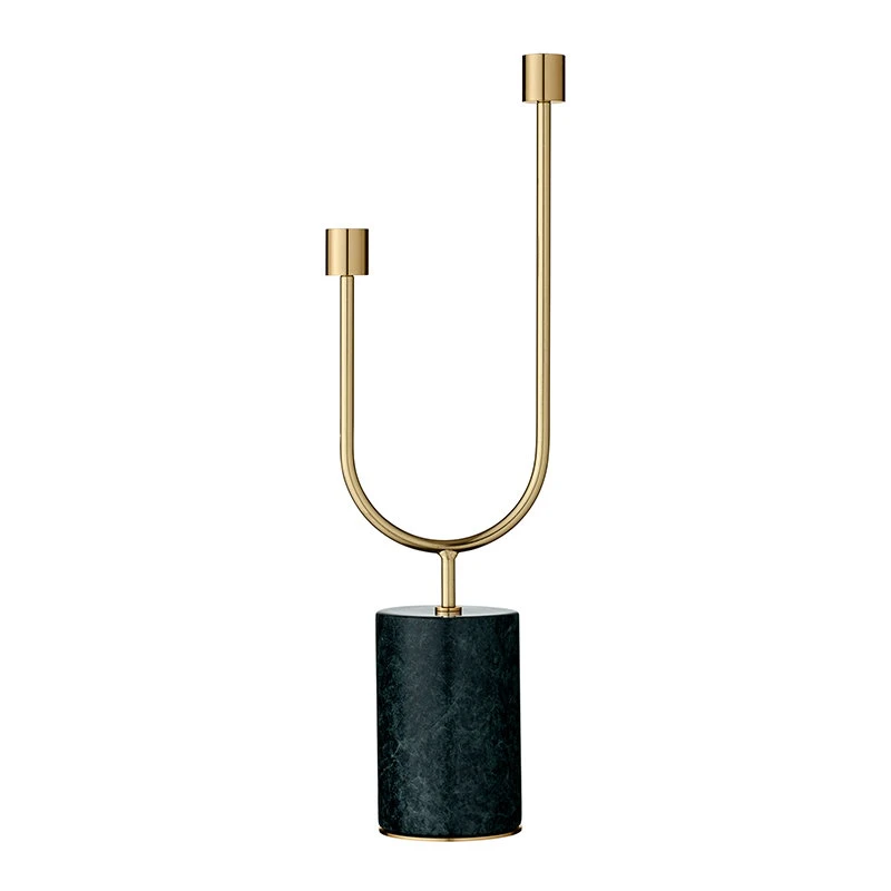 Der Kerzenhalter Grasil der dänischen Marke AYTM vereint auf beeindruckende Weise eleganten Marmor mit starkem Eisen. Die Grasil-Kollektion umfasst hohe Kerzenhalter, die auf den Boden gestellt werden können, und kleinere Kerzenhalter für den Tisch. Die Halter sind so konzipiert, dass zwei oder drei traditionelle Spitzkerzen hineinpassen. Der dunkel schattierte Marmor bildet eine stabile Basis für den schönen Eisenstiel mit seiner schwarzen oder goldenen Oberfläche.
