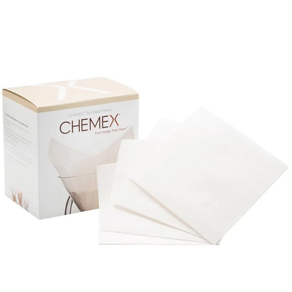 Die patentierten Verbundfilter Chemex FS-100 passen ideal zum 6-Tassen-Kaffeezubereiter Chemex. Eine Packung enthält 100 quadratische Filter, die sämtliche unerwünschten Partikel entfernen und einen volleren Geschmack garantieren.