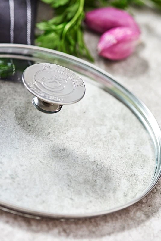 Dieser Glasdeckel ist mit der 24 cm großen Choc-Intense-Sauteuse von De Buyer kompatibel. Der Deckel ist bis zu 200° C backofenfest.