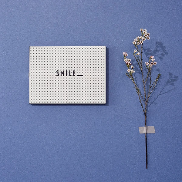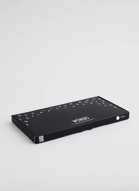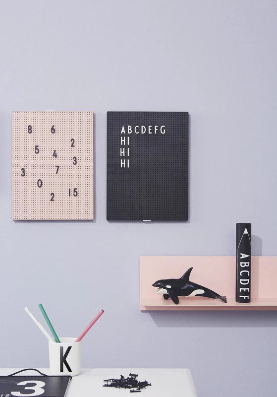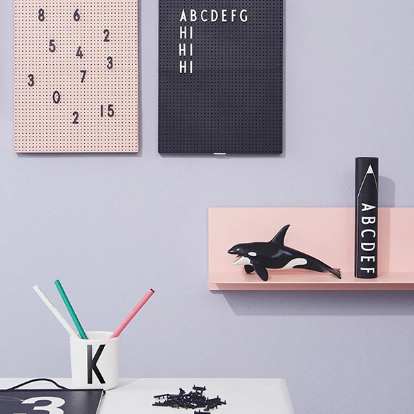 Die Buchstabenbox von Design Letter enthält 128 kleine Buchstaben und -zahlen aus Kunststoff, die für die Pinnwände von Design Letters entworfen wurden. Die stabilen und formschönen Buchstaben basieren auf der ikonischen Typografie, die Arne Jacobsen 1937 entworfen hat.
