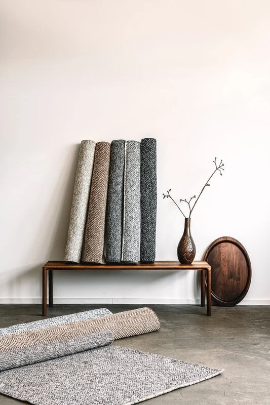 Der Teppich Rae ist Teil der Duo-Kollektion von VM Carpet, die von der finnischen Textilkünstlerin Elina Helenius entworfen wurde. Die Kollektion zeichnet sich durch zeitloses Design, Nachhaltigkeit und Multifunktionalität aus, worauf auch der Name der Kollektion verweist: Die pflegeleichten Teppiche sind doppelseitig, d. h. sie können beidseitig verwendet werden. Die Duo-Teppiche werden in der eigenen Weberei von VM Carpet im finnischen Dorf Karvala hergestellt.