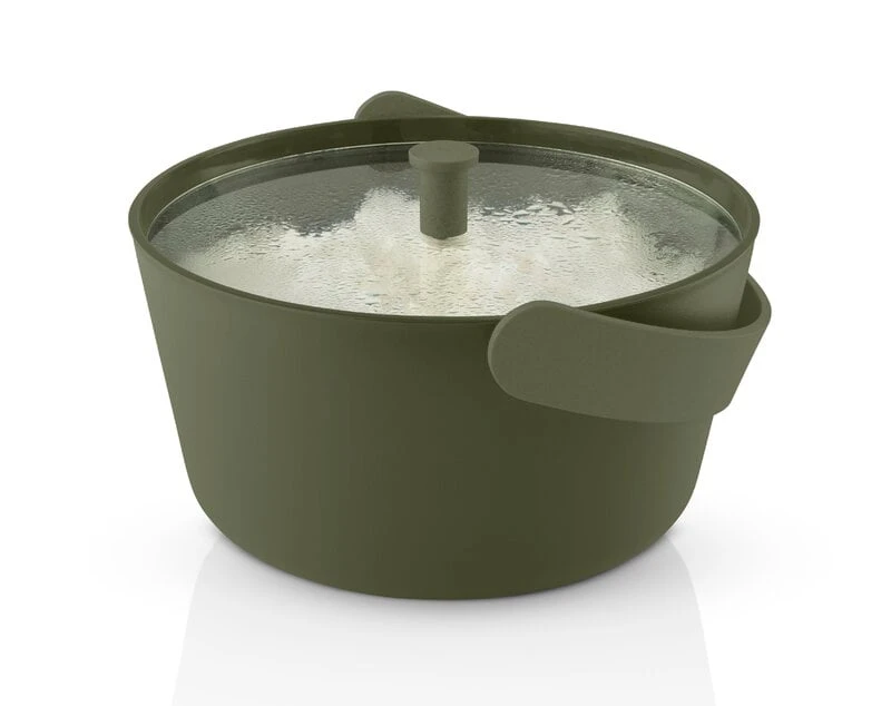 Der Green-Tool-Reisdämpfer von Eva Solo macht das Zubereiten von Reis, Quinoa oder Getreide unglaublich einfach: Einfach den Reis, Wasser und die gewünschten Gewürze in den Dämpfer geben, den Deckel aufsetzen und einige Minuten in der Mikrowelle garen. Anschließend lassen Sie den Reis etwa zwei Minuten ruhen. Dank des minimalistischen Designs kann der Dampfgarer auch als Servierschale verwendet werden.