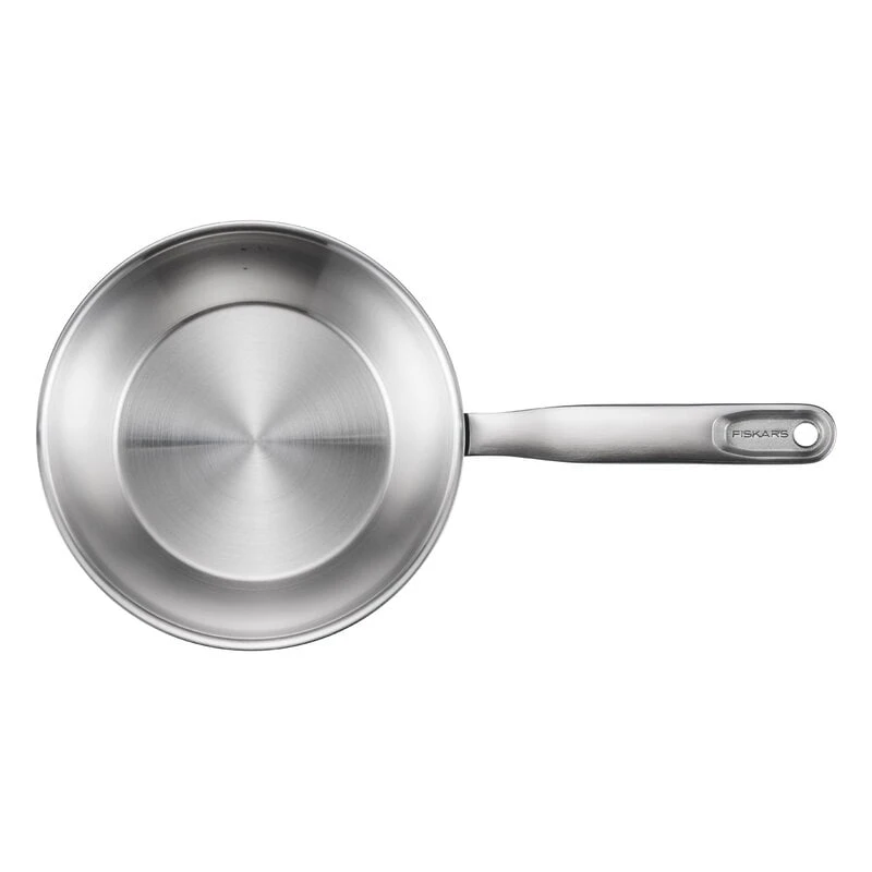 Die All-Steel-Sauteuse von Fiskars ist die perfekte Kombination aus Funktionalität, Langlebigkeit und alltäglichem Luxus. Der hochwertige Stieltopf aus Edelstahl hat einen dicken, unbeschichteten Boden aus drei Lagen, der die Wärme gleichmäßig und effizient leitet. So wie anderes All-Steel-Kochgeschirr ist auch diese Sauteuse spülmaschinenfest, backofenfest bis 270 °C und für alle Herdarten geeignet.