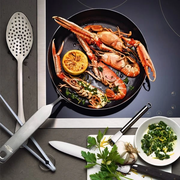 Rotisser NOH ist eine Serie von langlebigen und nicht überhitzbaren Bratpfannen, die speziell für Induktionskochfelder konzipiert sind. Die NOH-Technologie verhindert, dass sich die Pfannen über 230 °C erhitzen und Speiseöle in Brand geraten. Die innovativen Eigenschaften der Serie bieten den Pfannen eine längere Lebensdauer und sorgen für ein besseres Bratergebnis.