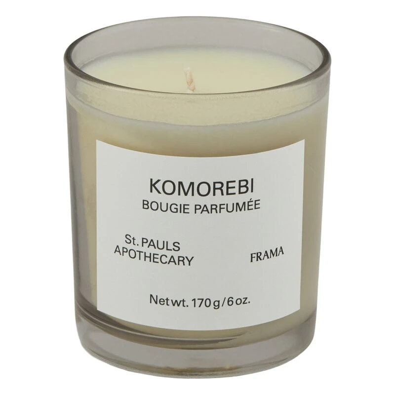 Die Duftkerze Komorebi von Frama ist inspiriert vom japanischen Begriff Komorebi. Das unübersetzbare Wort bezieht sich auf ein bestimmtes Licht, das durchscheint, wenn Sonnenstrahlen durch Bäume gefiltert werden. Der Duft ist eine fesselnde Mischung aus Zitrus-, Blumen- und Holzaromen mit den Hauptnoten Yuzu, Osmanthus, Jasmin und Zypresse.
