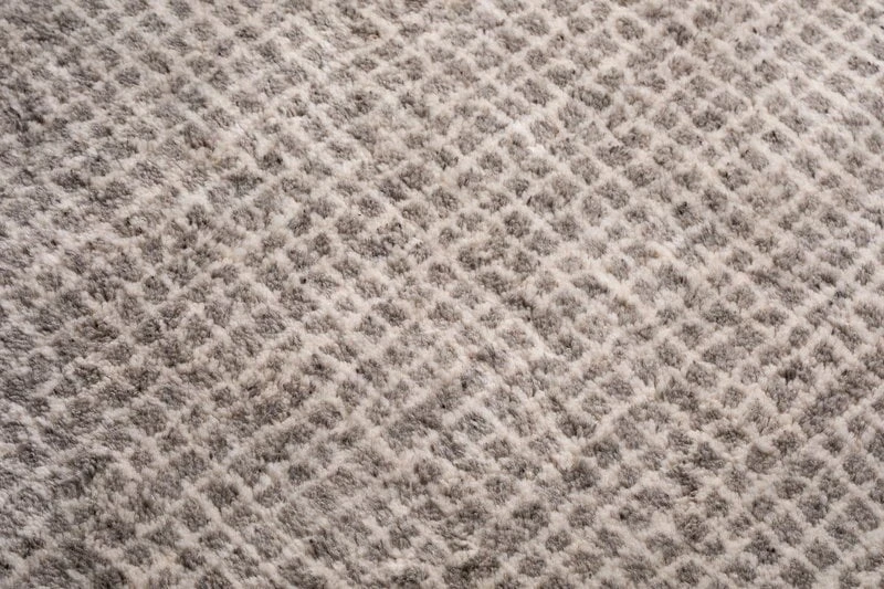 Der Grid-Teppich hat ein asymmetrisches Muster und geflochtene Wollfransen an jeder Ecke. Der weiche Grid-Teppich eignet sich perfekt für das Wohnzimmer oder den Lounge-Bereich und ist in verschiedenen Farben und Größen erhältlich.