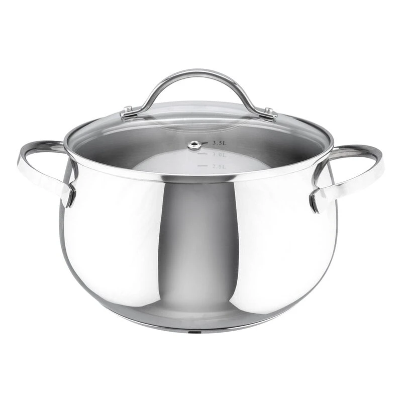 Der Belly-Stahltopf von Heirol verbindet schönes Design mit praktischem Nutzen und zaubert mit seiner sanft gerundeten Form garantiert ein Lächeln auf Ihr Gesicht! Der Vier-Liter-Topf ist aus hochwertigem Edelstahl gefertigt und mit einem dreischichtigen Boden ausgestattet: Zwischen den Stahlschichten ist eine wärmeleitende Aluminiumplatte eingekapselt, die für eine gleichmäßige Wärmeverteilung sorgt. Der Belly-Stahltopf ist für alle Herdarten geeignet.