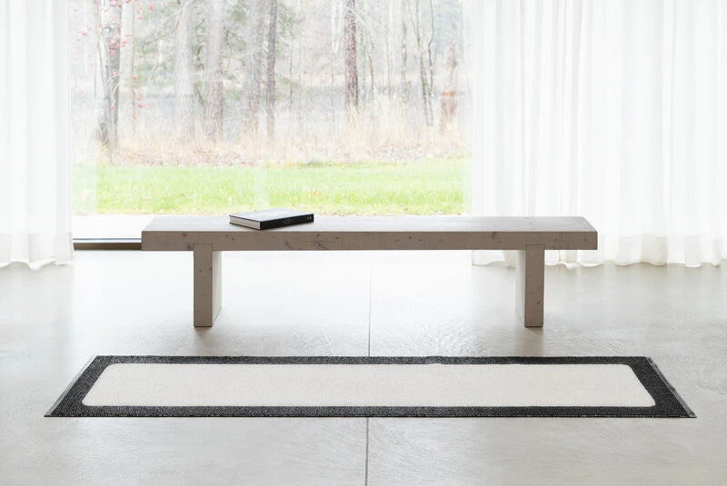 Der aus phthalatfreiem PVC-Flachband gefertigte Teppich ist leicht zu reinigen und eine praktische Ergänzung in allen Räumen. Aufgrund seiner schmalen Form lässt sich der Teppich leicht als eindrucksvoller Läufer im Flur, in der Küche oder im Außenbereich verwenden. Der Ilda-Teppich wird im schwedischen Dalarna unter Anwendung traditioneller Techniken gewebt.