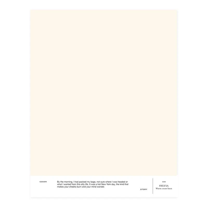 Die Innenfarbe von Cover Story im Farbton 008 Sylvia ist ein cremefarbenes Beige, das mit seinen sanften gelben Untertönen perfekt für Räume mit einem sanften, natürlichen Ambiente ist. Die matte Farbe sorgt für ein glattes, nicht reflektierendes Finish.