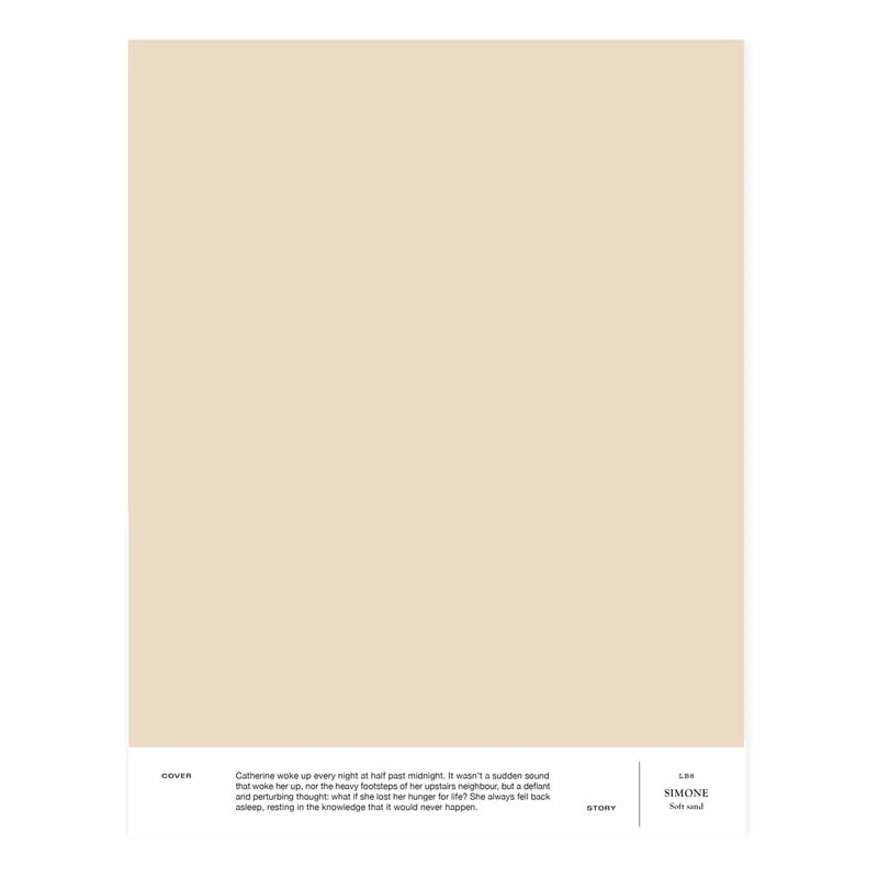 Die Innenfarbe von Cover Story im Farbton LB6 Simone ist Teil der Sonderkollektion der Marke, die in Zusammenarbeit mit der Designerin Linda Bergroth entstanden ist. Der sandbraune Farbton passt perfekt zu hellen Tönen, harmoniert aber auch mit kräftigen Farbtönen. Die Farbe erzeugt ein glattes, mattes, nicht reflektierendes Finish.
