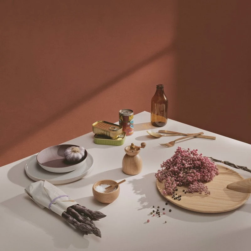 Kay Bojesen, der besonders für seine Holzspielzeuge bekannt ist, entwarf die Menageri-Kollektion in den 1940er-Jahren. Die Menageri-Produkte werden aus zertifiziertem Holz hergestellt und bringen auf natürliche Weise Wärme und Behaglichkeit auf den gedeckten Tisch. Die organischen Formen und die schöne Maserung des Holzes bilden einen interessanten Kontrast zu Geschirr aus Glas oder Keramik.