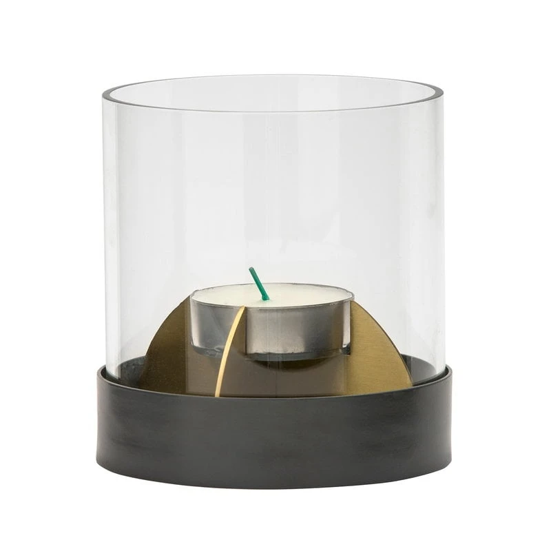 Der Fira-Kerzenhalter von Klong wurde von Mia Cullin entworfen und ist sehr vielseitig. Er kann sowohl im Innen- als auch im Außenbereich verwendet werden. Der Kerzenhalter, der aus einem Glaszylinder, einem Stahlsockel und Messingdetails besteht, kann sowohl für Stumpenkerzen als auch für größere Teelichter verwendet werden.