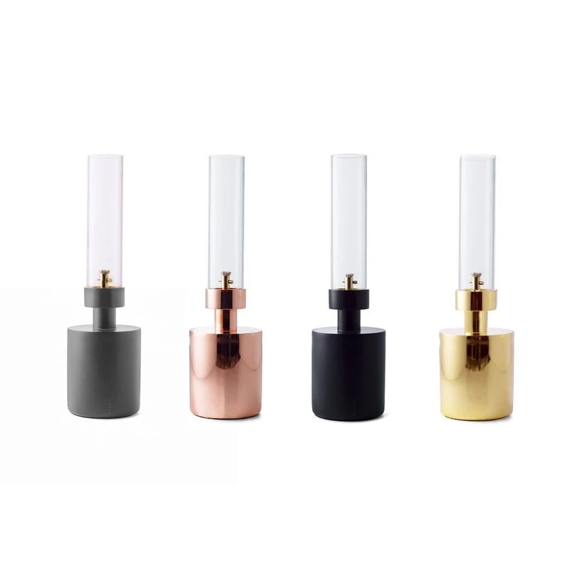 Die Patina-Kollektion von Klong umfasst traditionelle Öllampen in einem schlichten, modernen Design. Die von Mats Broberg und Johan Ridderstråle entworfenen Leuchten sind mit einer pulverbeschichteten und einer Kupfer- oder Messingoberfläche erhältlich, wobei Letztere im Laufe der Zeit und durch Gebrauch eine charmante Patina erhält. Die großen und kleinen Öllampen sind mit einem hochwertigen französischen Brenner ausgestattet, der Docht der Mini-Lampe ist aus Fiberglas gefertigt. Die Öllampen Patina versetzen Sie zurück in die guten alten Zeiten, jedoch mit einem reizvollen, modernen Twist.