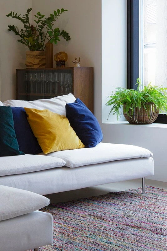 Wie der Name schon andeutet, bestand die ursprüngliche Idee der finnischen Flickenteppiche darin, übrig gebliebene Materialien zu verwenden. Traditionell wurden die Teppiche aus recycelten Stoffen oder alten Kleidungsstücken hergestellt, um nichts zu vergeuden. Daher sind sie in ihrer Farbe und ihrem Muster immer einzigartig, je nach den verwendeten Materialien.