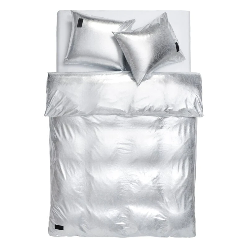 Der Bettbezug Nude Metallic Jersey von Magniberg verleiht dem Schlafzimmer einen Hauch von Discokugel-Glitzer und Pop-Art-Einflüssen. Die „Nude Metallic Jersey“-Bettwäsche ist aus Polyester und Elastan gefertigt, um ein dünnes, flexibles und extrem metallisches Finish zu erzielen. Der schillernde Glanz des Silbers zieht die Blicke auf sich und bringt Sie zum Lächeln.