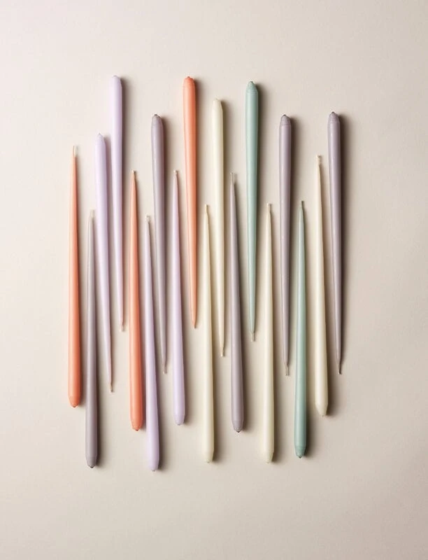 „STOFF Nagel by Ester & Erik“-Kerzen werden von einem dänischen Familienunternehmen namens Ester & Erik handgefertigt. Die Packung enthält 6 Spitzkerzen, die für die Kerzenhalter von STOFF Nagel bestimmt sind.