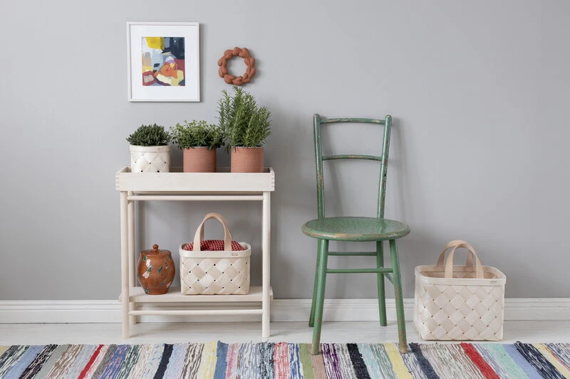 Das Taimi Plant Tray der finnischen Marke Verso Design schafft einen charaktervollen Aufbewahrungsort für Pflanzen und kleine Gegenstände in jedem Raum des Hauses. Die aus Birkenholz gefertigten Ständer der Taimi-Serie eignen sich für Zimmerpflanzen, Setzlinge, geliebte Bücher oder als Beistelltisch für Lieblingsutensilien. Der Boden der Taimi Plant Box ist mit dünnem grauen Wollfilz bedeckt.