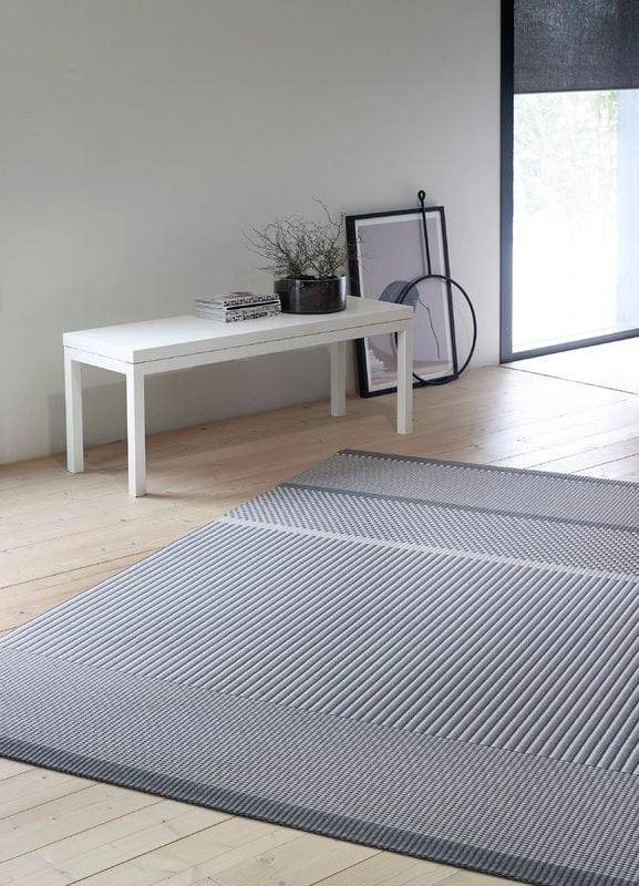 Die San Francisco-Teppiche von Woodnotes zeichnen sich durch Blöcke aus horizontalen und vertikalen Streifen in schönen, erdigen Tönen aus. Die zweifarbigen Teppiche sind mit fransigen Enden versehen. Entworfen von Ritva Puotila eignen sich die vielseitigen Teppiche gut für verschiedene Interieurs und, aufgrund des antistatischen Materials, auch für Haushalte mit Allergien. Die Teppichkollektion San Francisco wurde bei den ICONIC AWARDS 2017 mit dem Titel „Best of Best“ ausgezeichnet (Interior Innovation, organisiert vom deutschen Rat für Formgebung).