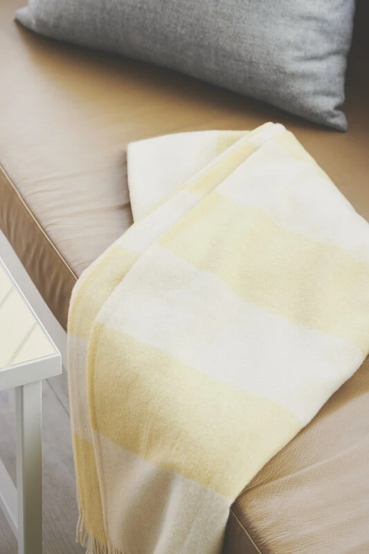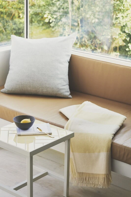 Die The-Sweater-Decke des dänischen Textilunternehmens Silkeborg Uldspinderi fühlt sich an wie Ihr Lieblingspullover. Die von Stilleben entworfene Sweater-Decke besticht durch ein einfaches, pastellfarbenes Streifenmuster mit Fransen an den Enden. Die Decke ist 130 x 190 cm groß und besteht zu 100 % aus Wolle, was sie schön warm und besonders strapazierfähig macht.