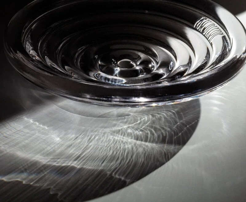 Zur Herstellung der mittelgroßen Schale wird Glas geschmolzen, das dann in zwei- oder dreiteilige Eisenformen gepresst wird. Das Ergebnis ist die einzigartige Silhouette der Press-Produkte: Sie wirkt sanft und stark zugleich. Aufgrund des Herstellungsprozesses können kleine Abweichungen auftreten, wodurch jedes Objekt auf einzigartige Weise fasziniert. Die Schale wird in einem Geschenkkarton geliefert.