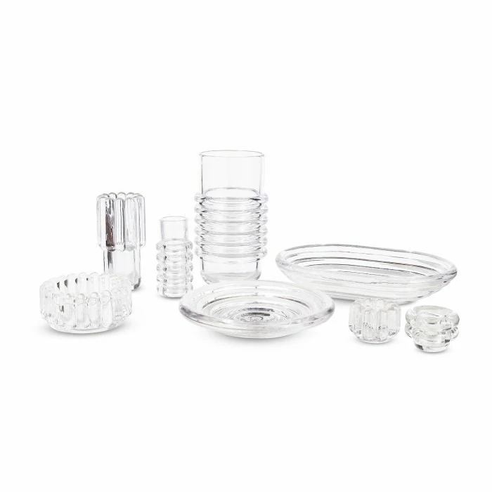 Die Press-Schale von Tom Dixon ist ein reizvolles Mehrzweckgefäß, das als Obstschale für den Alltagsgebrauch, als Servierschale für Dinnerpartys oder sogar als elegante Chipsschale für einen Filmabend verwendet werden kann. Die schöne, transparente Schale findet auch außerhalb der Küche einen Platz: Die wichtigsten Kleinigkeiten im Schlafzimmer oder Flur lassen sich in der Schale mit den dicken Glasrändern stilvoll aufbewahren.