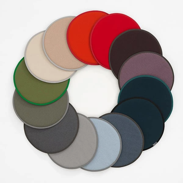 Die Kissen Seat Dot von Vitra verdanken ihren unverwechselbaren Look den runden Formen und den frischen Farben, die von Hella Jongerius entworfen wurden. Die leicht gepolsterten, zweiseitigen Kissen bieten Komfort und Stil für viele Arten von Stühlen und können bei Bedarf gewaschen werden.