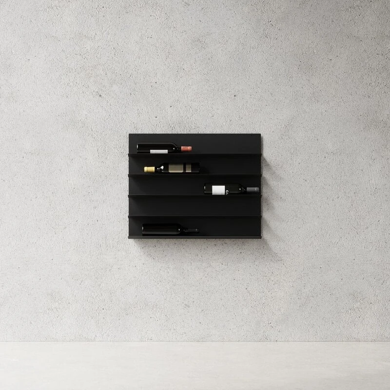 Das schwarze Weinregal von Nichba bietet eine moderne Aufbewahrungsmöglichkeit für besondere Wein- und Sektflaschen. Das Design des Flaschenregals ist so minimalistisch und luftig gehalten, dass es wirkt, als würde es der Schwerkraft trotzend an der Wand schweben. Das Weinregal wurde von Nichlas Bjørn Andersen entworfen. Es ist aus Stahl gefertigt und findet seinen Platz im Weinkeller, in der Küche oder im Esszimmer. Ideal auch als Geschenkidee für andere Weinliebhaber:innen! Das Weinregal verfügt über fünf Fächer für insgesamt zehn Weinflaschen.